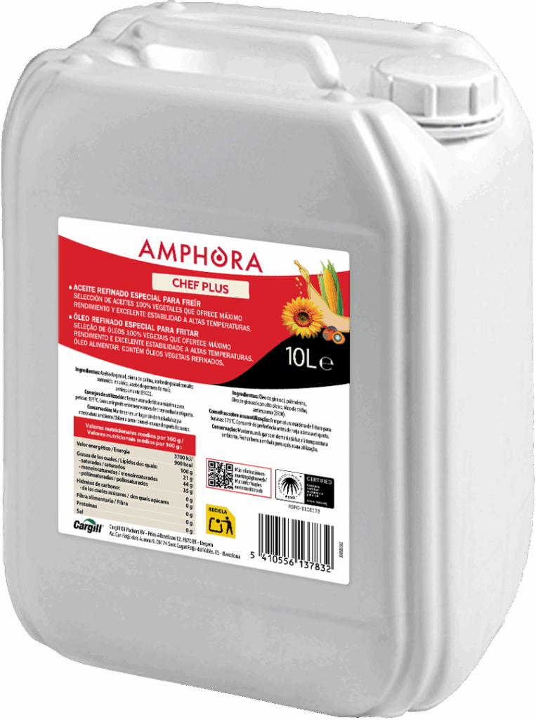 Aceite de girasol, oleína de palma, aceite de girasol alto oleico, aceite de germen de maíz, antiespumante (E-900).